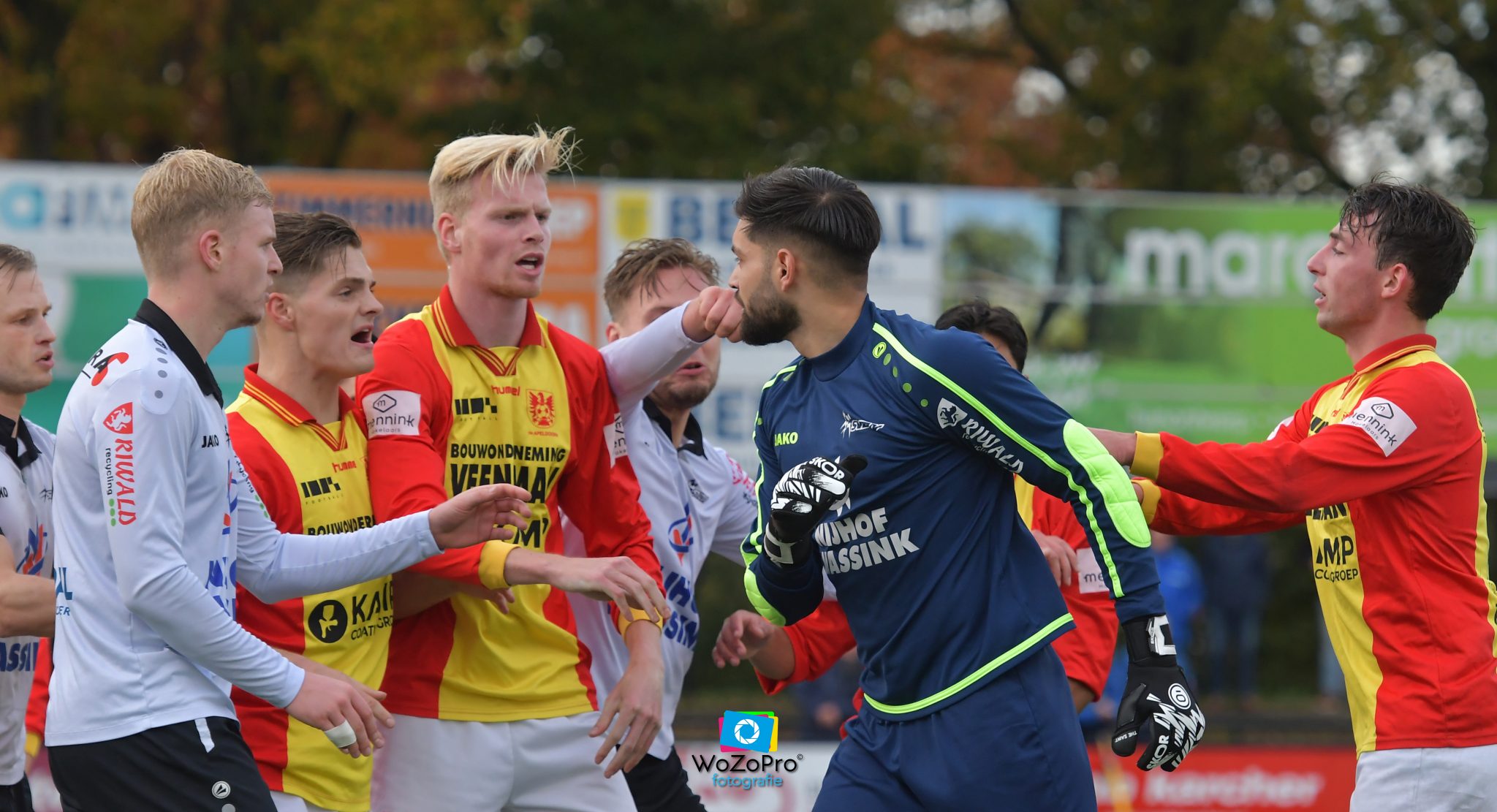 SVZW-doelman Julian Bakker is het middelpunt bij een opstootje.
