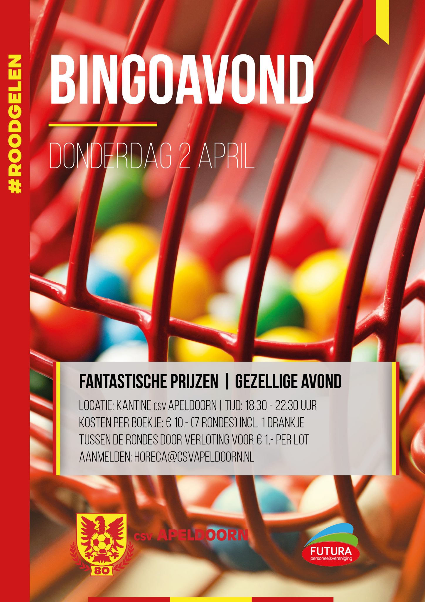 De paasbingo wordt dit jaar georganiseerd door csv Apeldoorn en de Personeelsvereniging Futura (personeelsvereniging IT-organisatie Belastingdienst). Dat betekent dat zowel leden (en ouders van leden) van csv Apeldoorn als leden van de PV Futura van harte welkom zijn.