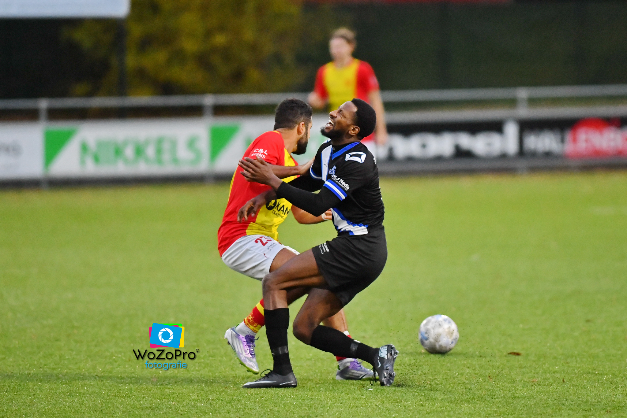 Doelpuntenmakers Cem Köse en Junta Samboe in duel.